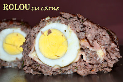 Carnea tocata se condimenteaza si se intinde in forma de patrat sau dreptunghi pe o folie transparenta. Peste foaia de carne se aseaza sunca, branza topita, iar in mijloc se pun ouale.Cu ajutorul foliei modelam carnea in forma de rulou si ii turtim capetele sa nu iasa umplutura. Se aseaza apoi in tava (o asezam cu partea in care s-au unit marginile in jos si evident fara folia transparenta).